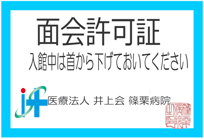 - 面会許可証をお渡ししますので、入館中は首から下げておいてください。